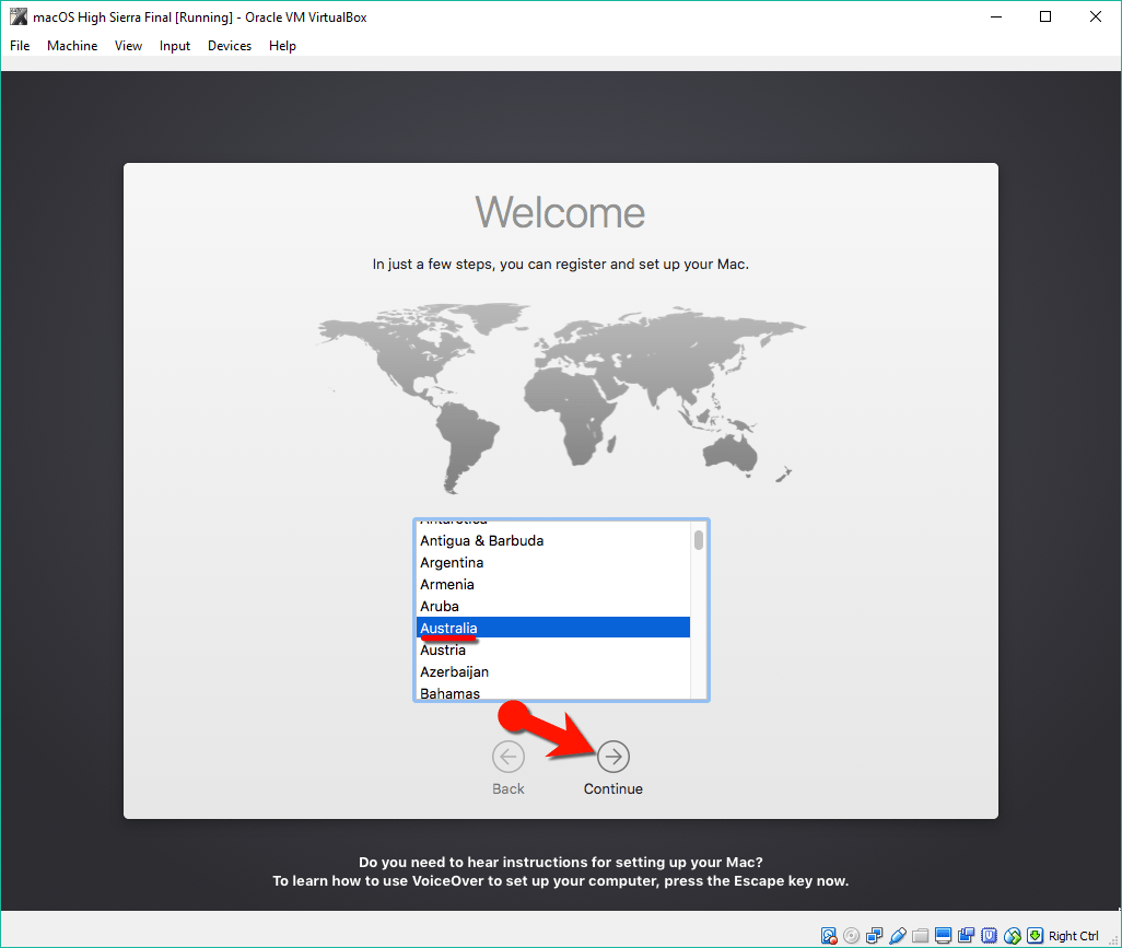 #1. It’s time to perform macOS High Sierra clean installation. Select your Country and click Continue.